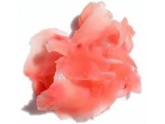 Most of the processed pickled ginger (pink or golden yellow) is used with Aspartame is an artificial sweetener. Potassium sorbate gets used as a preservative. Both are toxic. The pink ginger is dyed with red food coloring.