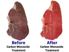 More than 70% of all beef and chicken is being treated with poisonous carbon monoxide gas. Although not a chemical dye bit it can make seriously decayed meat look fresh for weeks. The meat industry continues to allow this toxic gas injection into many of the meat.