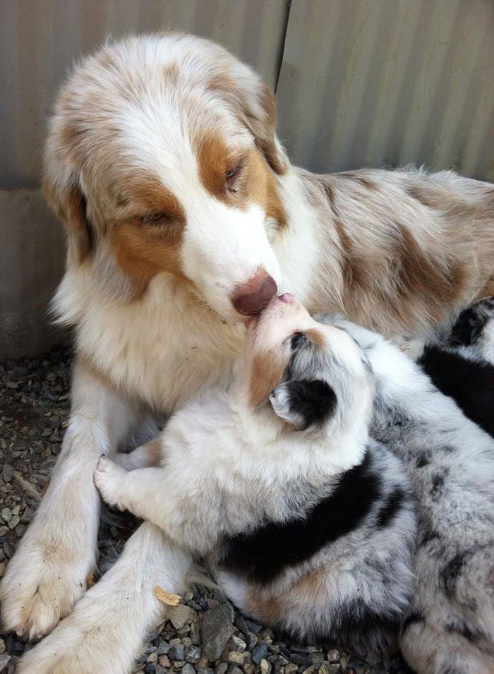 When dogs become parents they are as caring and proud of their kids as any human parent would be. In fact, they become excellent parents! Dogs keep their pups clean, fed, and safe and teach them proper “doggie manners”. And see just how adorable they look together!