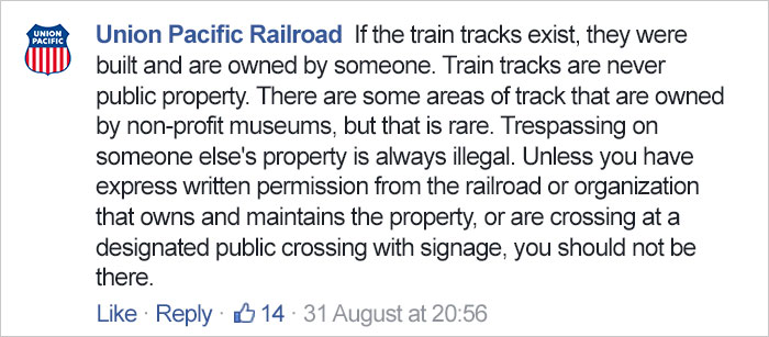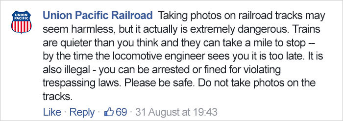 While the photoshoot gave everyone nightmares, Union Pacific Railroad pointed out that the photoshoot could have easily turned into a nightmare itself