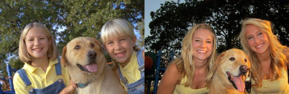24. A girl and her dog 11 years apart. Is it me, or the dog looks the same?