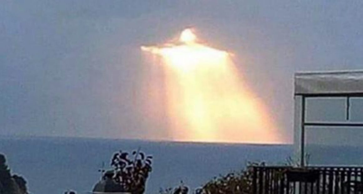 When Alfredo posted the enchanting photo which was taken over the Tyrrhenian sea, it somehow caused a stir. Some agree the figure is divine and a sign by God and others say it’s just the clouds and the sun penetrating through them.