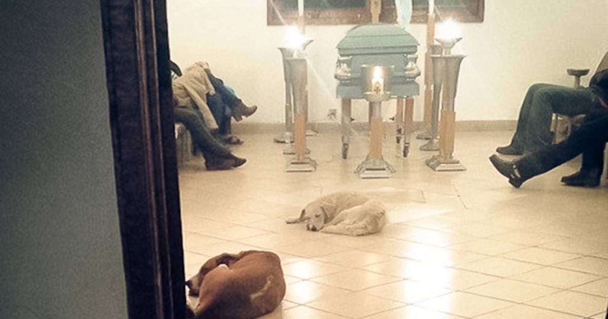 The funeral home staff was confused and didn’t know what to do but soon realized what was going on and decided to let the dogs stay.