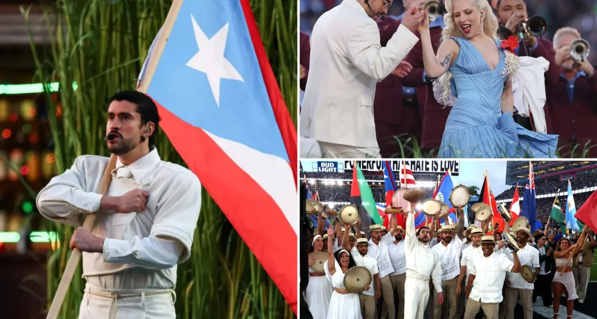 Bad Bunny ended his Super Bowl LX halftime show with a message he framed as unifying — “together we are America” — but critics were quick to condemn the performance as divisive and “degenerate.”