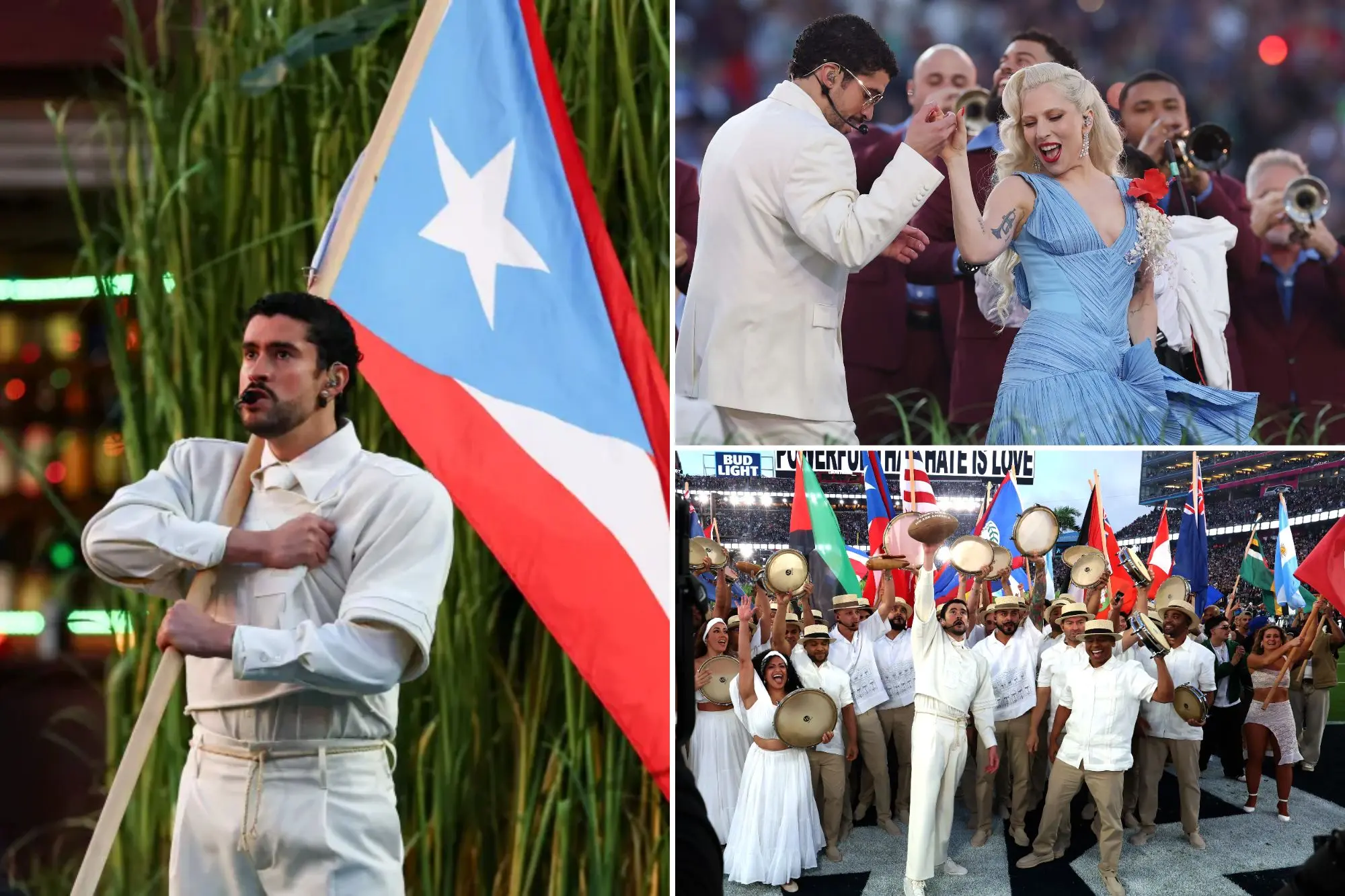 Near the end of the halftime show, Bad Bunny emerged from a dense sugar cane field waving the Puerto Rican flag, flanked by dancers dressed as power line workers.