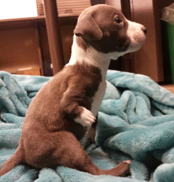 Slowly another little ball appeared, this one noticeably smaller. Down the ramp it slid. Then in a somewhat awkward manner, the little pup began hobbling toward the others, doing its best to catch up…