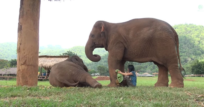 Elephant Insists Her Caretaker Comes Sing A Lullaby To A Baby Elephant