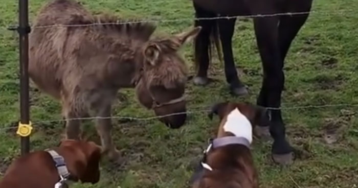 Donkey Laughs At Dog Getting Shocked By Electric Fence