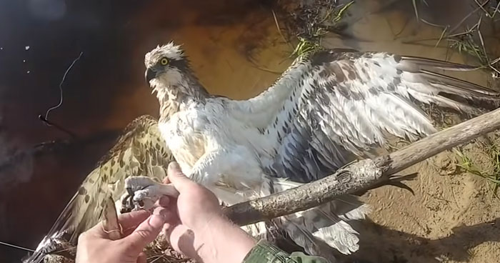 A video has landed online showing us rescuing a helpless hawk entangled…