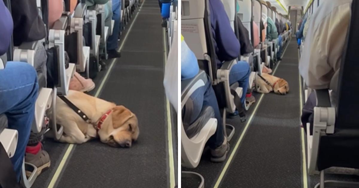 How do you feel about the Labrador Retriever peacefully napping in the airplane cabin? Would you also consider flying with your pets to explore new destinations? Share your thoughts and be sure to share this with your friends and family.