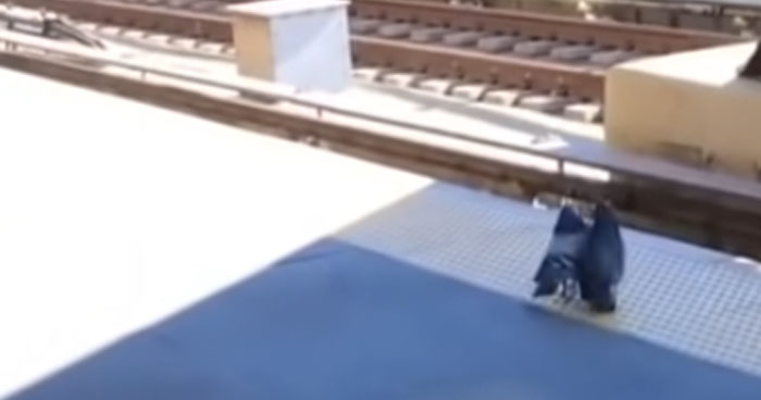 This one hung from the fourth floor on a window sill, and the entire rescue was filmed by a camera mounted on the body of the firefighter.
