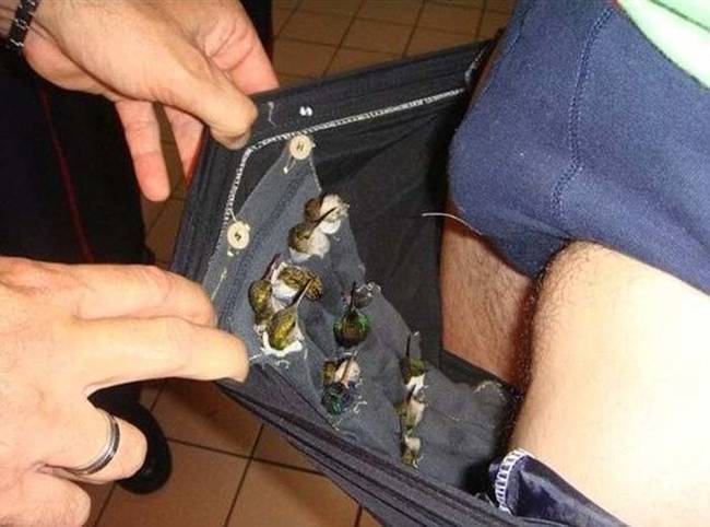 After searching him , they discovered  something weird. The man, was carrying more than a dozen of living hummingbirds. He wrapped each bird and  inserted it in  an individual pocket. He also sewed them on the interior of his underwear.