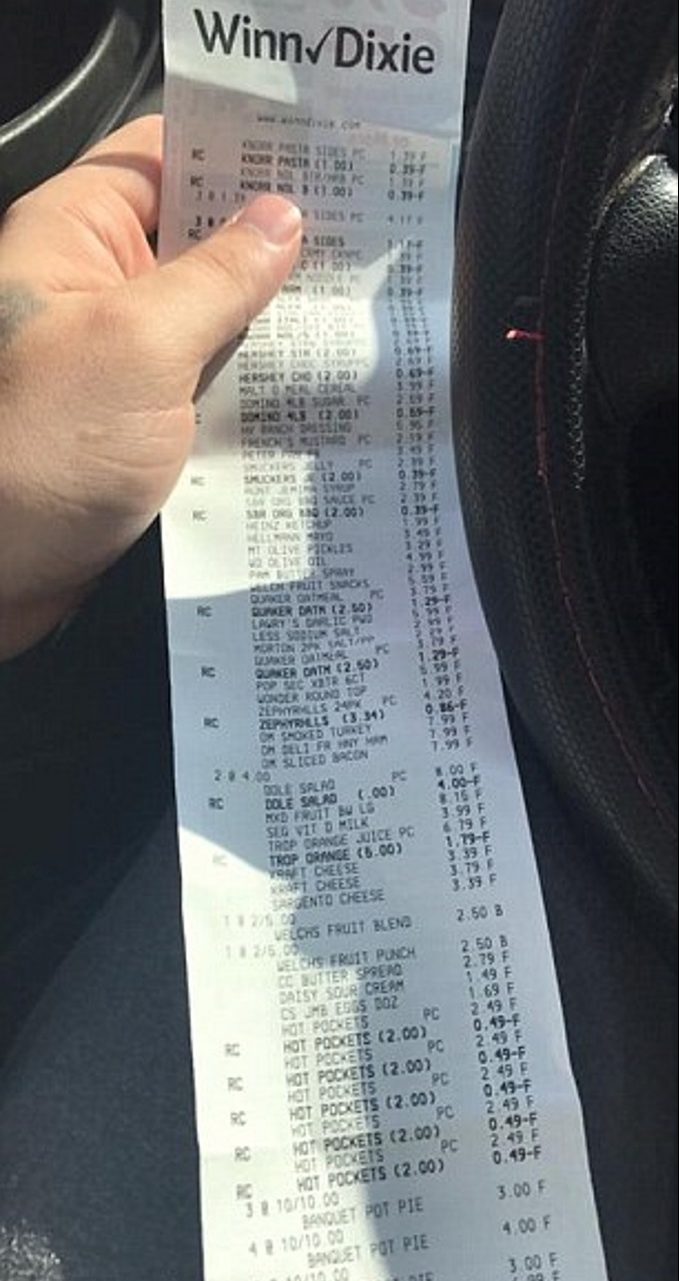Brandon went straight to the supermarket and purchased a long list of groceries for his ex.
