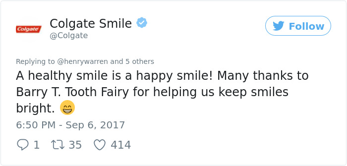 Even Colgate chimed in to congratulate Barry for his excellent work