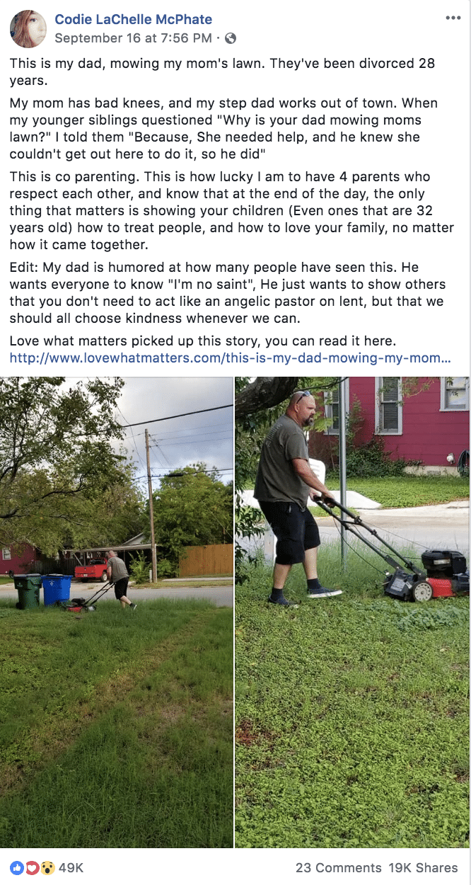 Do you wish more divorced couples would act like Codie’s parents? Then share this!