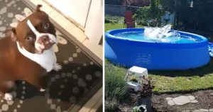 This Boston Terrier has a history of tricking his mom into thinking he has to go out to pee and instead uses the opportunity to take a swim! She never knows what to believe, but she has to let him out in the chance he isn’t crying wolf. Check it out!