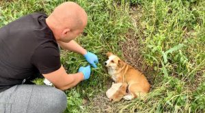 When the rescuers showed up, the situation had changed. The dog mom seemed a bit depressed. She accepted the help of the rescuers and even ate some food. Maybe she was aware of the fact that she had been abandoned for good. Maybe she had given up waiting.