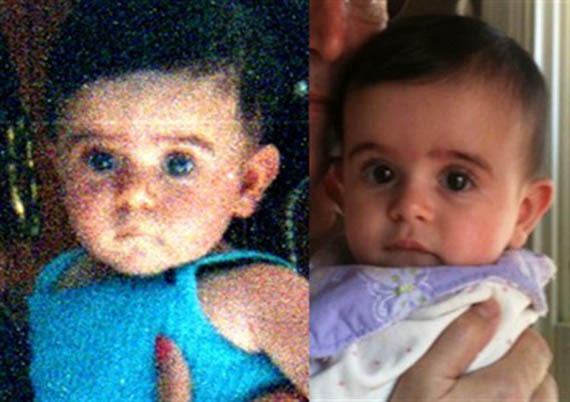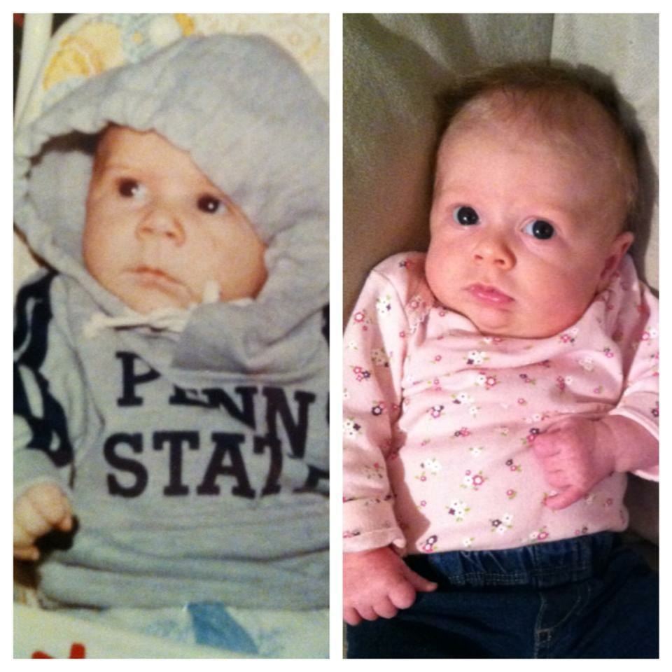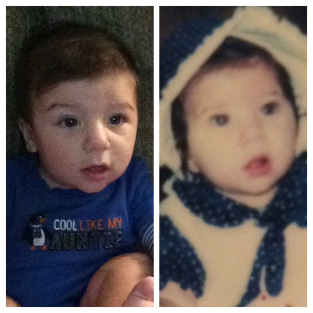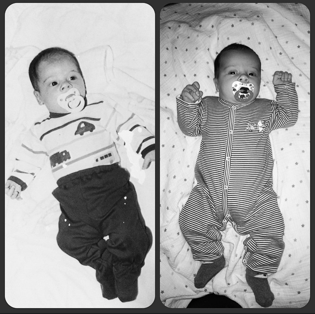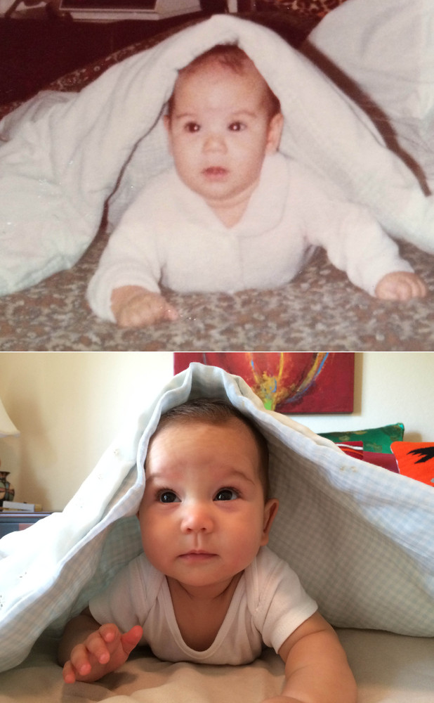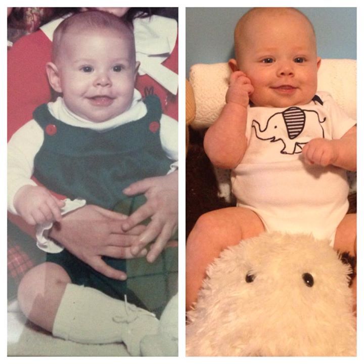My son on the left at 5 months and me on the right at 5 months.