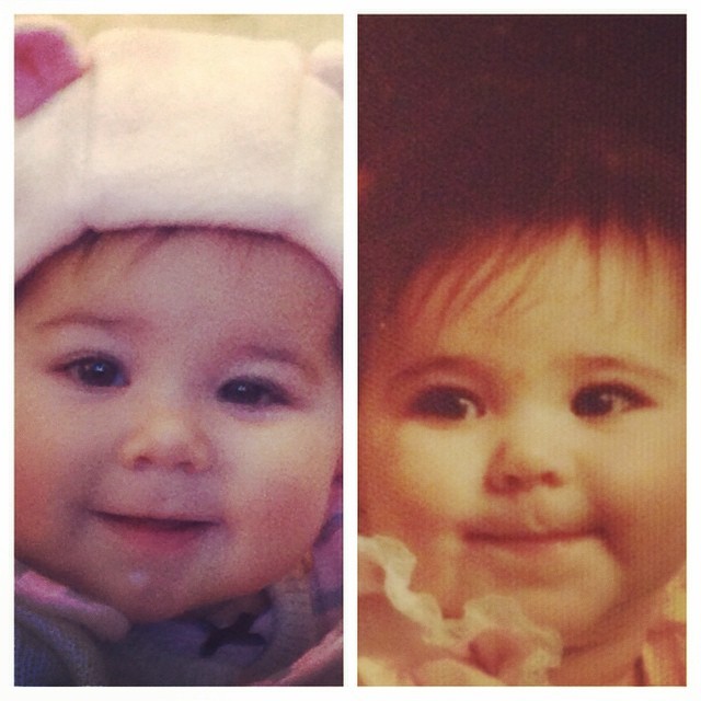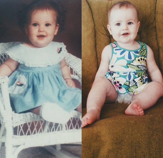 Me on the left & my daughter, Mabel on the right- both at 11 months.