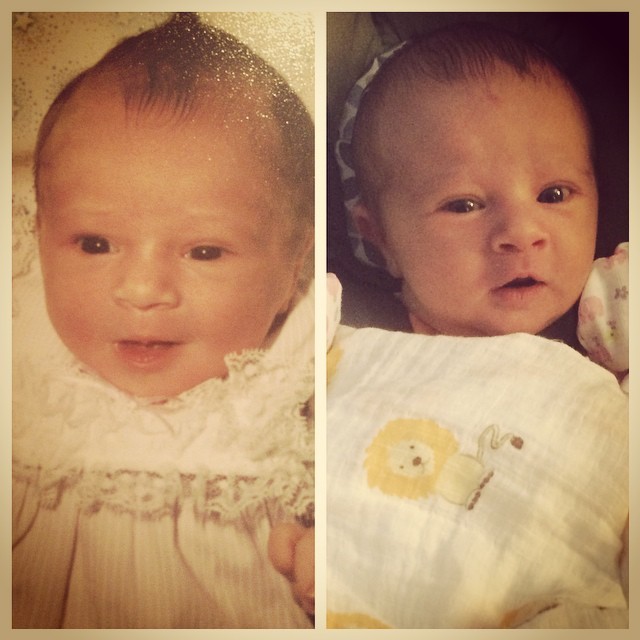Here is a picture of my daughter and I side by side. Both of us are 2-days old. I am on the left, she’s on the right 🙂