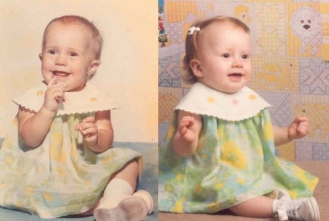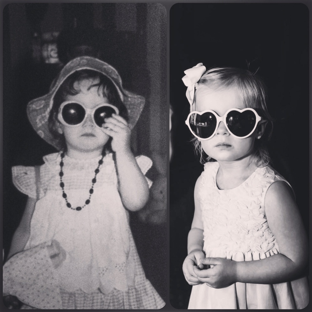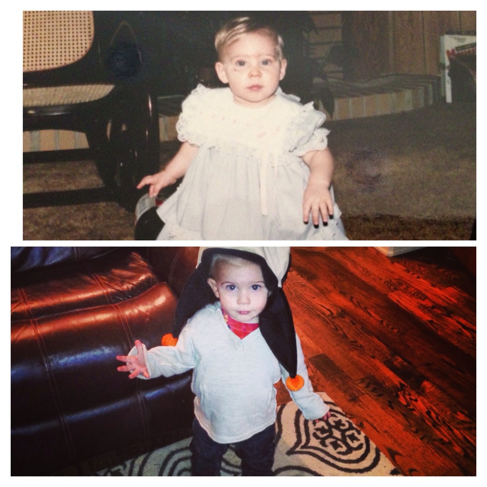 First photo is of my mom and I, same age (1yr) , same dress.