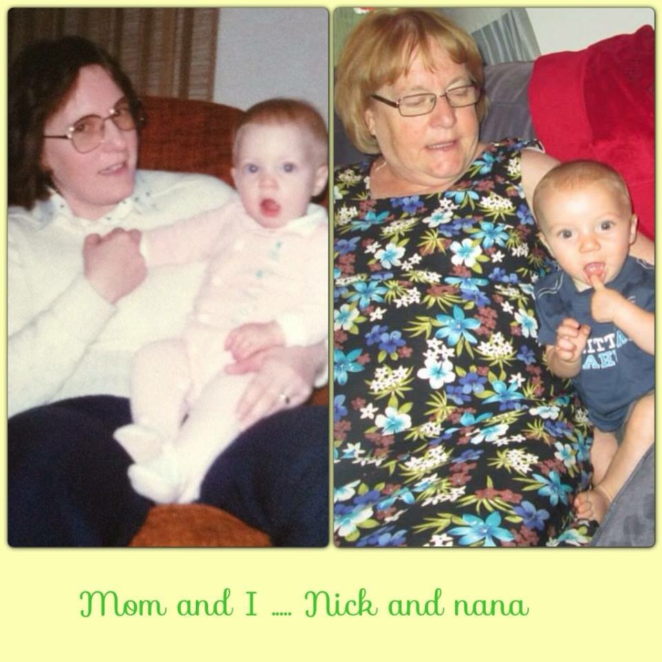 Here is a side by side of my mom holding me back in 1983 and then one of her holding my son Nicholas last year in 2013! We couldn’t get over how similar the whole thing looked and it wasn’t a set up picture!