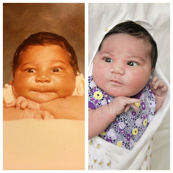 My newborn photo, and my daughter when she was 10 days old (taken this past Mother’s Day, no less! :))