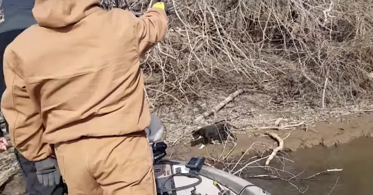 A couple of fishermen were surprised to find an abandoned dog stranded on a river bank and whistled for him to come closer. No one knew how this pup got here or where he came from, but they knew they had to help. You can see how eager the little guy is to be rescued!