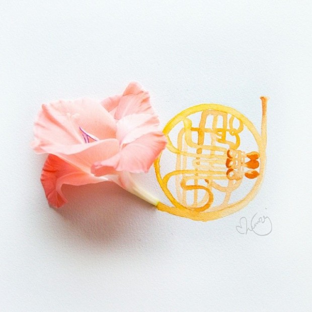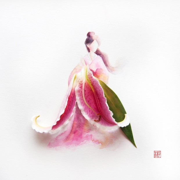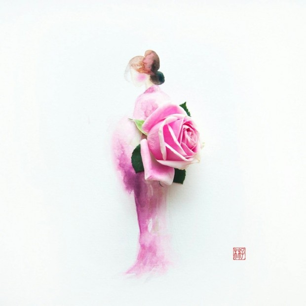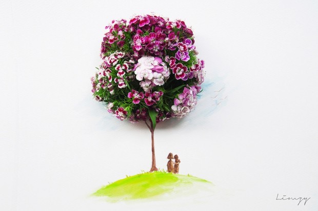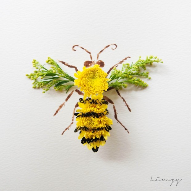 Lim Zhi or known as Limzy, is an artist that uses flowers to create mixed media art. She mixes flowers with food and watercolor illustrations. Without adding more, here are some samples of  her creations: