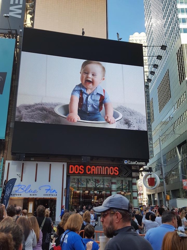 However, and as you can see here, that notion is totally misinformed. Asher is the cutest kid around. He can be whatever he wants to be in his life without people pointing out stuff about his capabilities. In fact, Asher’s photo was chosen and played on the Jumbotron, Times Square, at the onset of the New York City Buddy Walk. You can bet this kid is going far already!