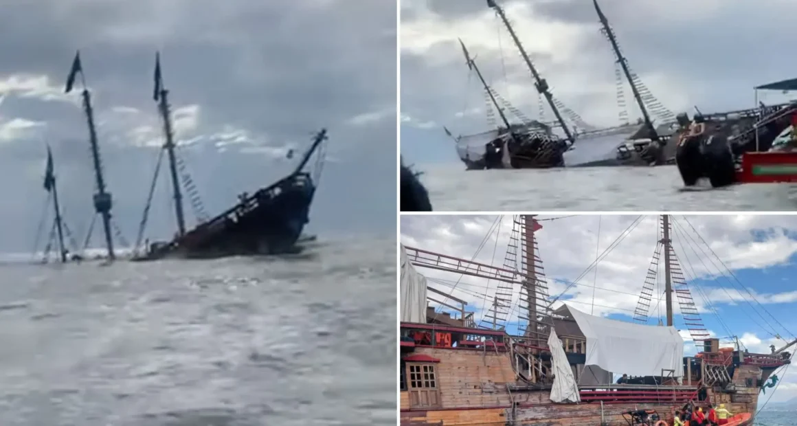 The Marigalante, a replica of Christopher Columbus’ legendary galleon, the Santa Maria, began taking on water while attempting to return to port for repairs in Puerto Vallarta on Friday afternoon, according to Pirate Ship Vallarta, the company that operated the popular tourist attraction.