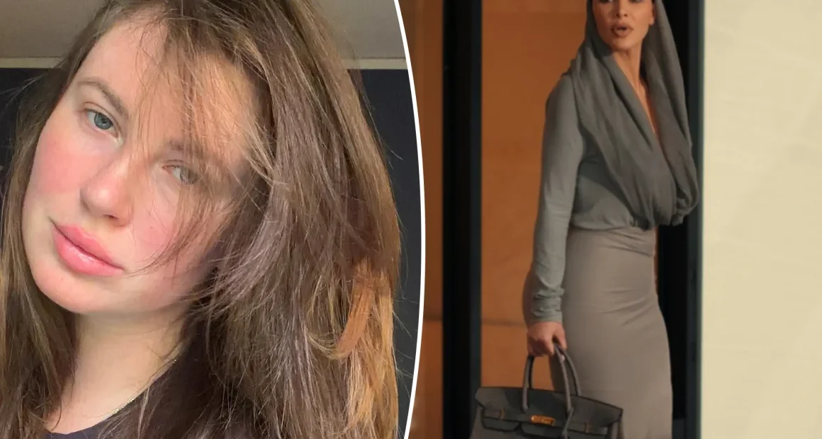 The 30-year-old actress has called out Kim Kardashian for sporting what looks like an elephant-leather Birkin bag on the Hulu legal series All’s Fair.