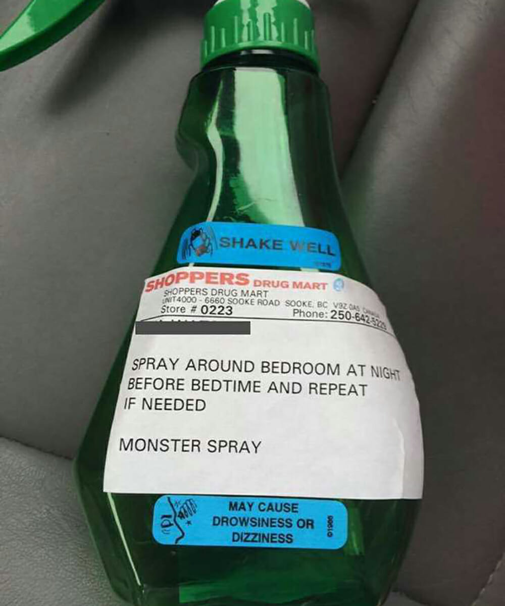 The dad went to the local pharmacy and got a prescription that would eliminate the monsters for good. It was a “Monster Spray.”
