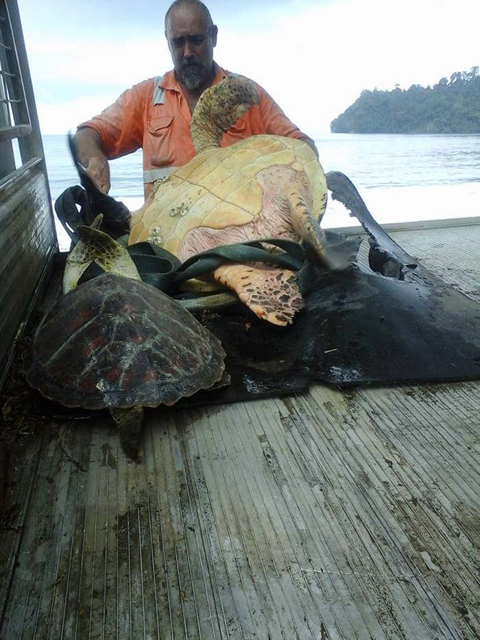 It’s so fascinating to discover what foreign countries have in their food markets. In Papua New Guinea, for instance, Arron Culling and his co-worker Mark recently went to the market and found them selling giant sea turtles for a feast. They were still alive and crawling around!