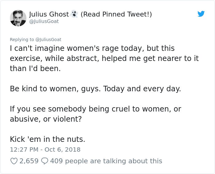 “I can not imagine women’s anger now,” Moxon wrote. “However, this particular exercise, while subjective, helped me get closer to it than I had been.” Since Judge Brett Kavanaugh has been confirmed to the US Supreme Court that the planet was hit by a wave of protest and anger, highlighting the issues that surround attack and sexual abuse. Scroll down to see the analogy and inform us your ideas.