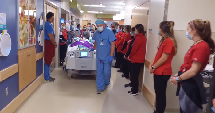 There, doctors and nurses bid farewell to a 7-year-old girl who made the world cry. Zahra Austin, 7, had a horrific accident a few days ago – shortly after her birthday celebration she accidentally fell with a balloon tied to her bed. Unconsciously, she was found by her mother, who immediately called paramedics, and a neighbor also helped resuscitate her daughter. The rescuers then discovered a heartbeat in the young girl, but unfortunately, a cruel fate would have it otherwise. Her brain had been without oxygen for a long time and the girl would never recover. Parents told doctors that Zahira wanted to become an organ donor. Their words were listened to and the girl became a heroine before her death and she saved many children by donating organs. The hospital posted a touching scene online when several doctors and a number of nurses paid tribute to him before heading to the operating room.