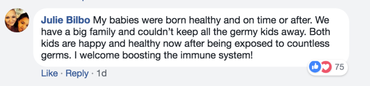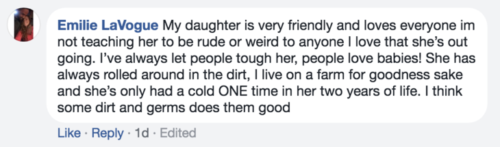 But many moms, including those who are nurses, helpfully point out that illnesses that are harmless for adults can be fatal for newborns as there is a danger they can get dehydrated or worse. And many parents highlighted babies that are born with illnesses which compromise their immune system are more vulnerable to the dangers of germs.