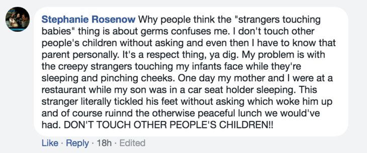 Meanwhile some moms said strangers touching babies without permission was “creepy.”