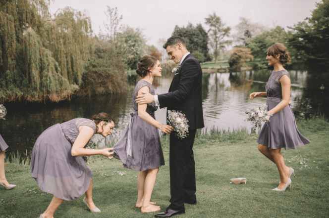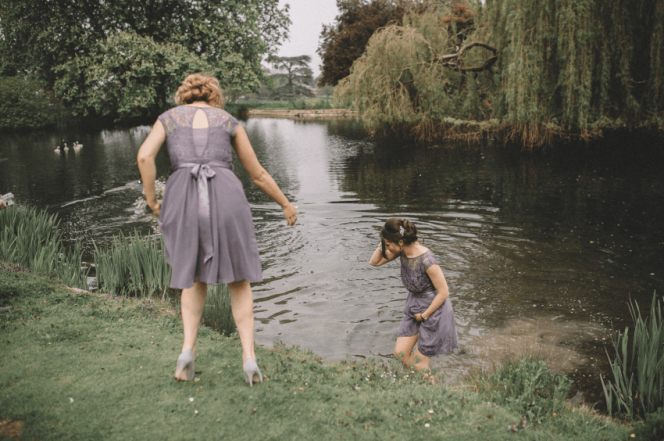 Without hesitation, the bride’s sister, Faye, kicked her shoes off and walked into the pond to scare the swan away.
