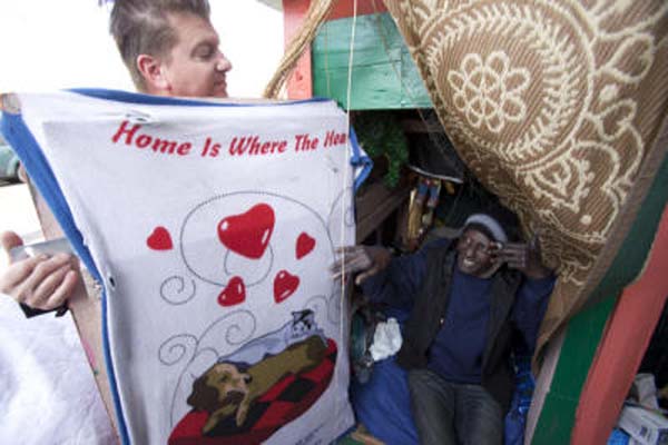 He has the ability of selling sculptures to rich people and make lots of money, but he gives his attention to homeless people of California and provides them with a shelter.