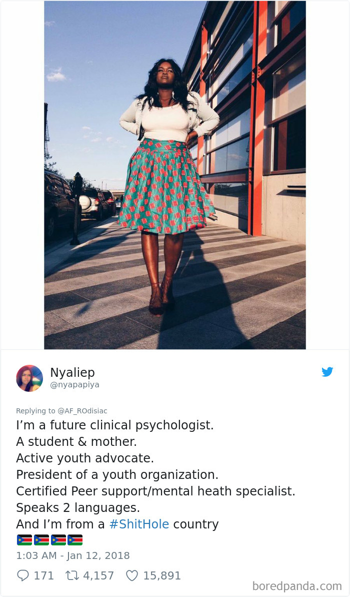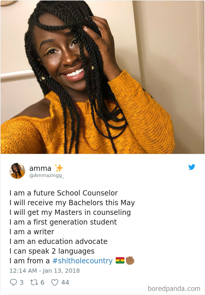 People from these so-called ‘shithole countries’ are not having this s**t. They voiced their opinions by listing their competences and achievements in a series of tweets that have since gone viral, thanks to their inspirational and often hilariously biting comebacks.