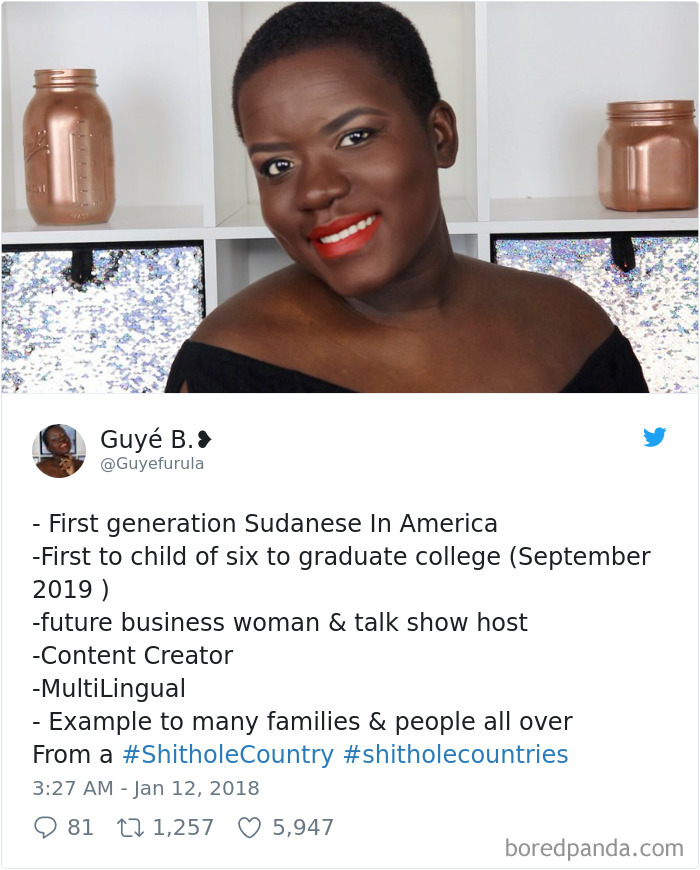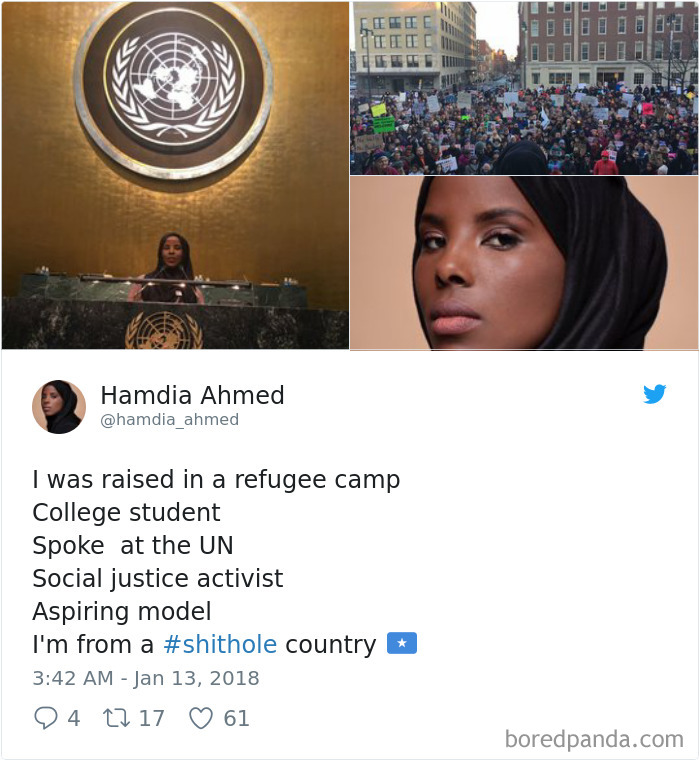 We’re glad that people could shut down these words in the best way possible. With their own qualities, values, capacity of overcoming adversity to rise from the ‘shithole’ and turn themselves into amazingly inspiring and successful people. Exactly the kind of people that made America great in the first place!