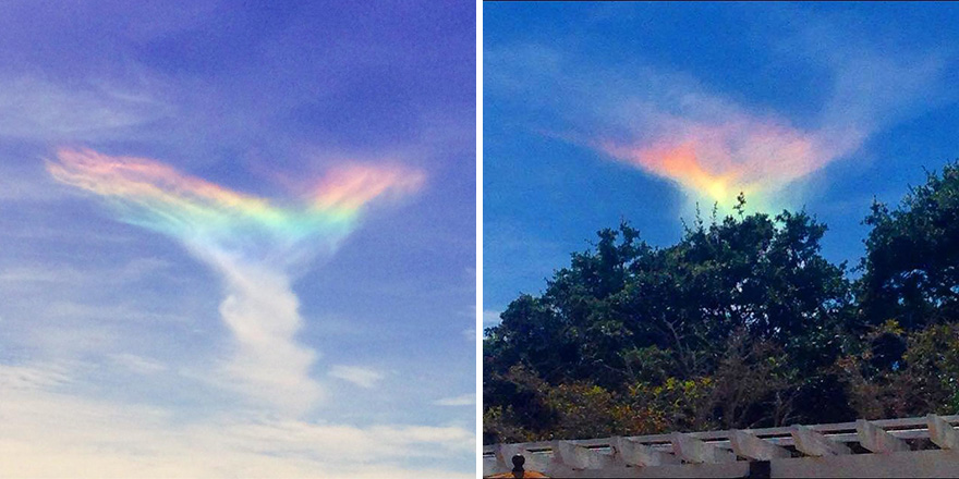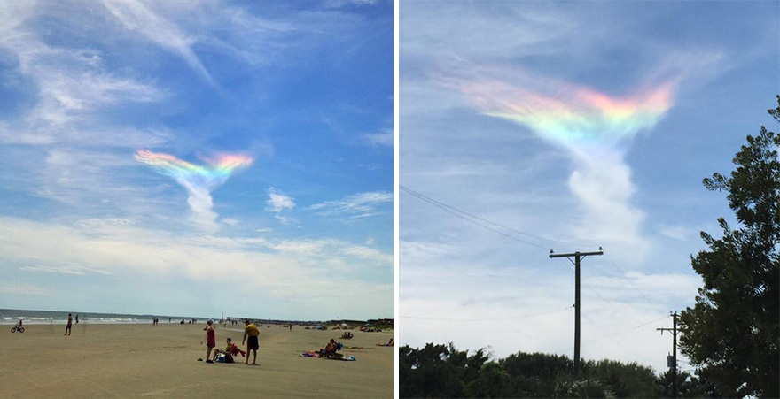 Residents of Isle of Palms, South Carolina, were surprised to see a very rare and beautiful natural phenomenon this past Sunday. The circumhorizontal arc — so-called fire rainbow — is a twisted and colorful cloud. They appear in high-level cirrus clouds that are made up of tiny ice crystals and lingered for about an hour.