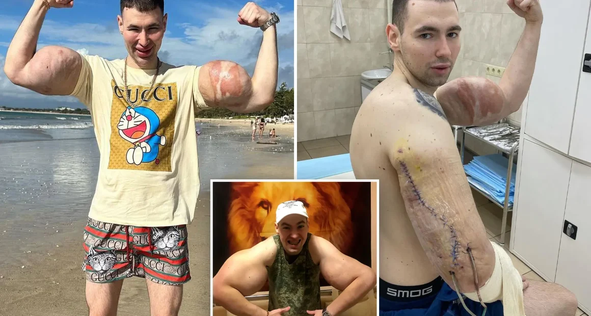 Kirill Tereshin began injecting synthol into his arms in 2017, drawing global attention for his 24-inch biceps, which earned him the nickname “Russian Popeye” due to their resemblance to the iconic cartoon character.