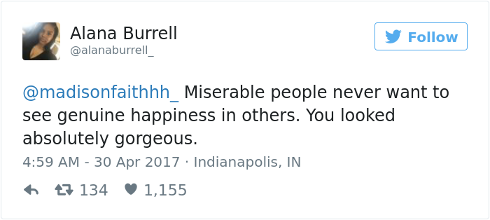 Sadly, this is exactly what happened to the couple, Tre Booker and Madison, who were attending their school prom. After getting their pictures taken together as they were about to head for the dance, Madison shared the photos on Twitter and got a seriously rude response from someone she didn’t even know.