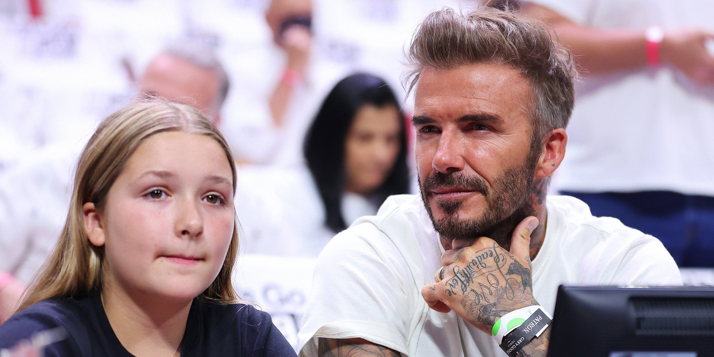 Harper Beckham, David Beckham (2023), (Darren Gerrish/WireImage for Victoria Beckham via Getty Images)Celebrating David Beckham: A Doting Father and Advocate Against Fat-Shaming