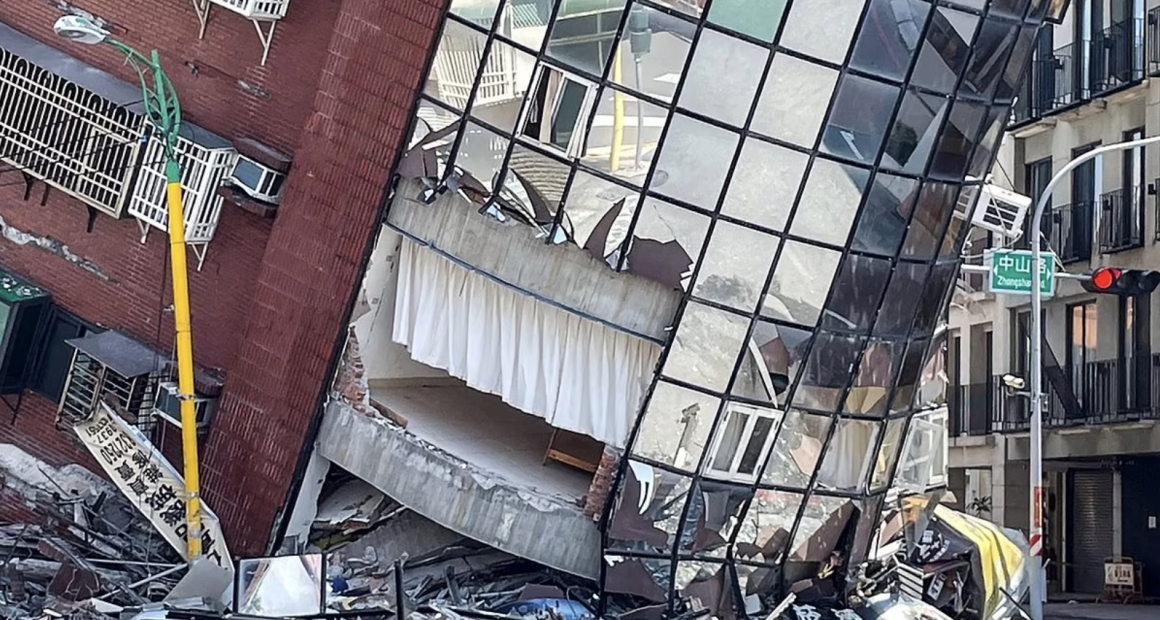 Pictures from Hualien, situated on Taiwan’s eastern coast near the epicenter, displayed a sizable glass-fronted building partially collapsed onto its facade.