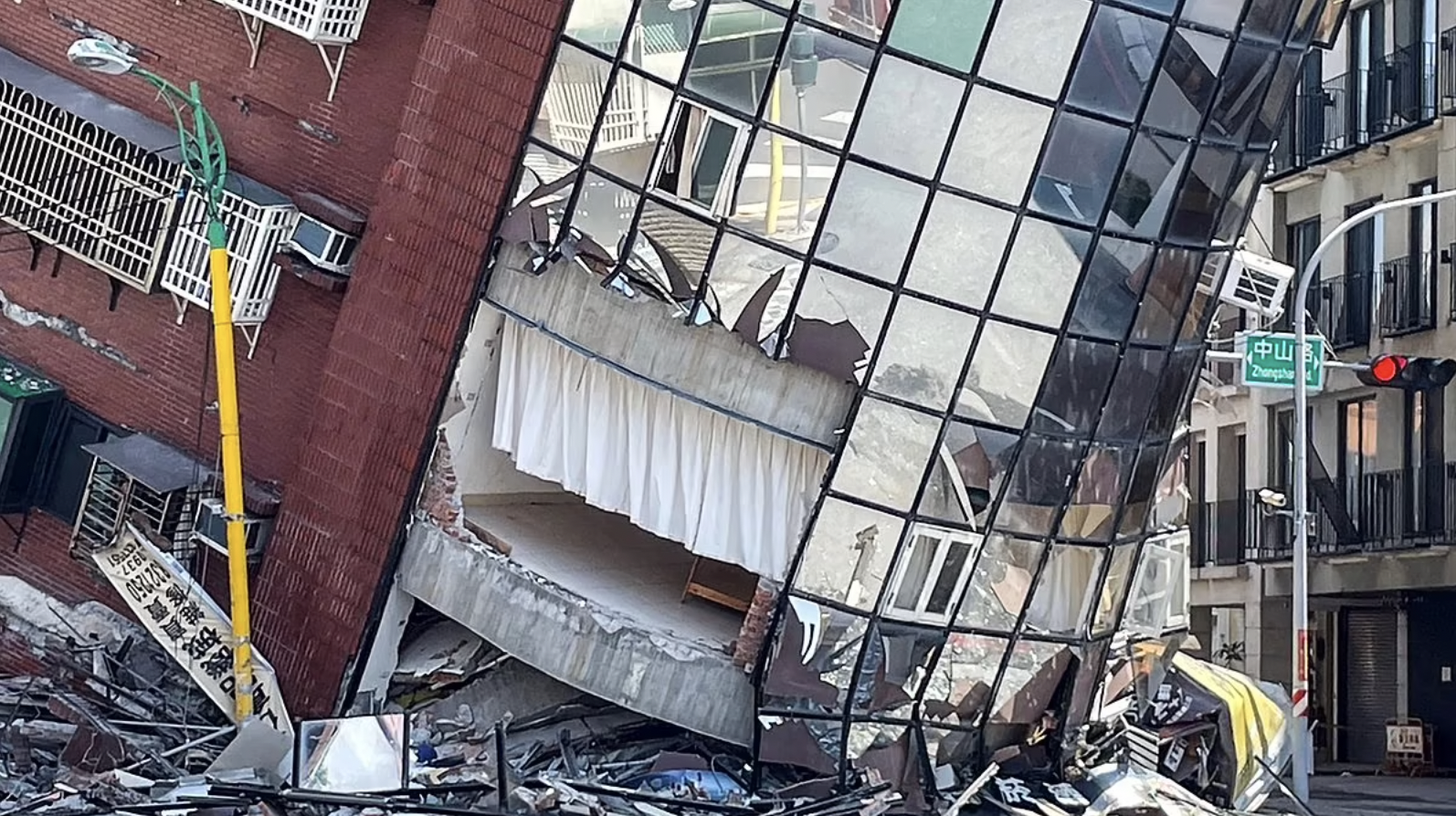 Local TV broadcasts showcased dramatic footage of multi-story buildings in Hualien and other areas leaning precariously after the quake subsided, while a warehouse in New Taipei City collapsed.