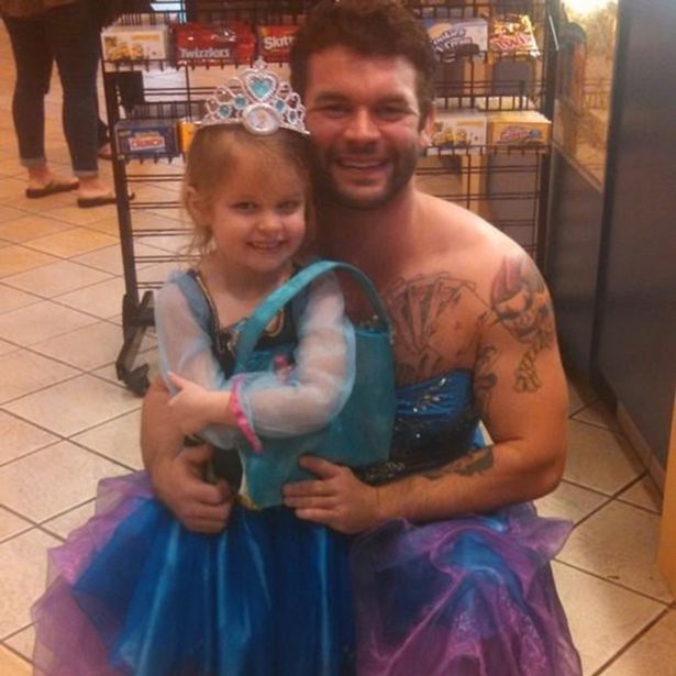A bearded, heavily tattooed man swallowed his pride and put on a princess outfit so his niece Izzy wouldn’t feel embarrassed to wear her princess costume in public .