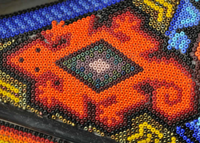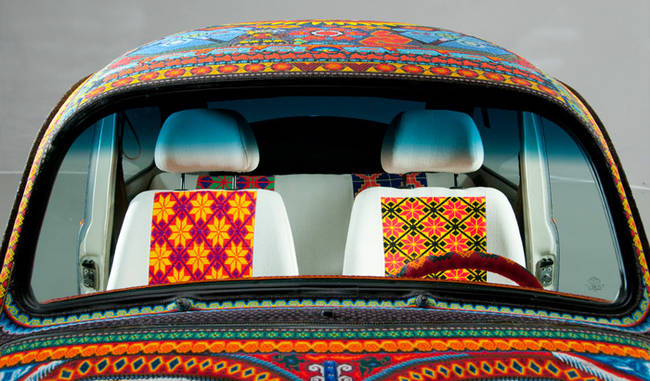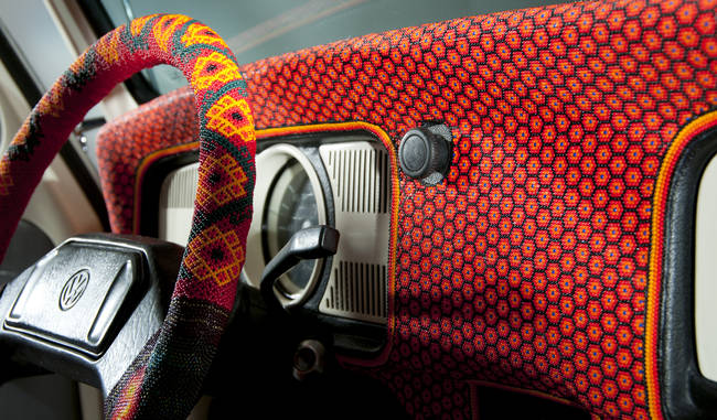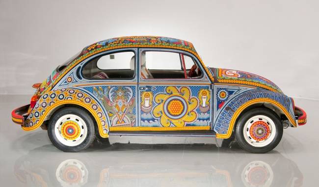 The two families have used over 2 million glass beads and beeswax to wrap every part of the 1990 Beetle including the dashboard.